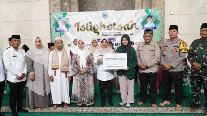 PANDEGLANG, INST-Media.id – Badan Amil Zakat Nasional (Baznas) Kabupaten Pandeglang menyalurkan bantuan pendidikan sebesar Rp180 juta kepada mahasiswa jenjang Strata 1 (S1) asal Kabupaten Pandeglang. Penyaluran bantuan dilaksanakan pada Rabu (24 Desember 2025) bertepatan dengan kegiatan istigotsah di Masjid Agung Ar-Rohman, Pandeglang.