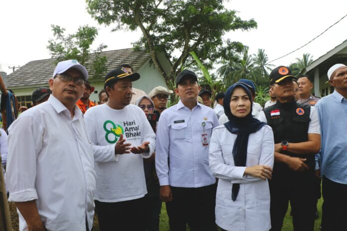 SERANG, INST-Media.id – Bupati Serang Ratu Rachmatuzakiyah mengunjungi lokasi pengungsian korban bencana tanah longsor di Gedung Madrasah Roudhotunnajah, Kampung Cibodas, Desa Kadubeureum, Kecamatan Padarincang, Rabu (7/1/2026). Kunjungan tersebut dilakukan untuk memastikan kondisi para pengungsi serta penanganan bencana berjalan optimal.