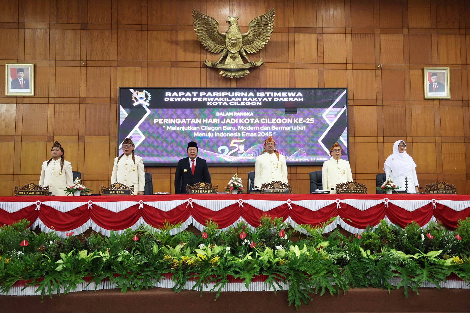 Sebagai informasi, tema HUT ke-25 Kota Cilegon adalah Melanjutkan Cilegon Baru, Modern, dan Bermartabat Menuju Indonesia Emas 2045. (Kha/red)
