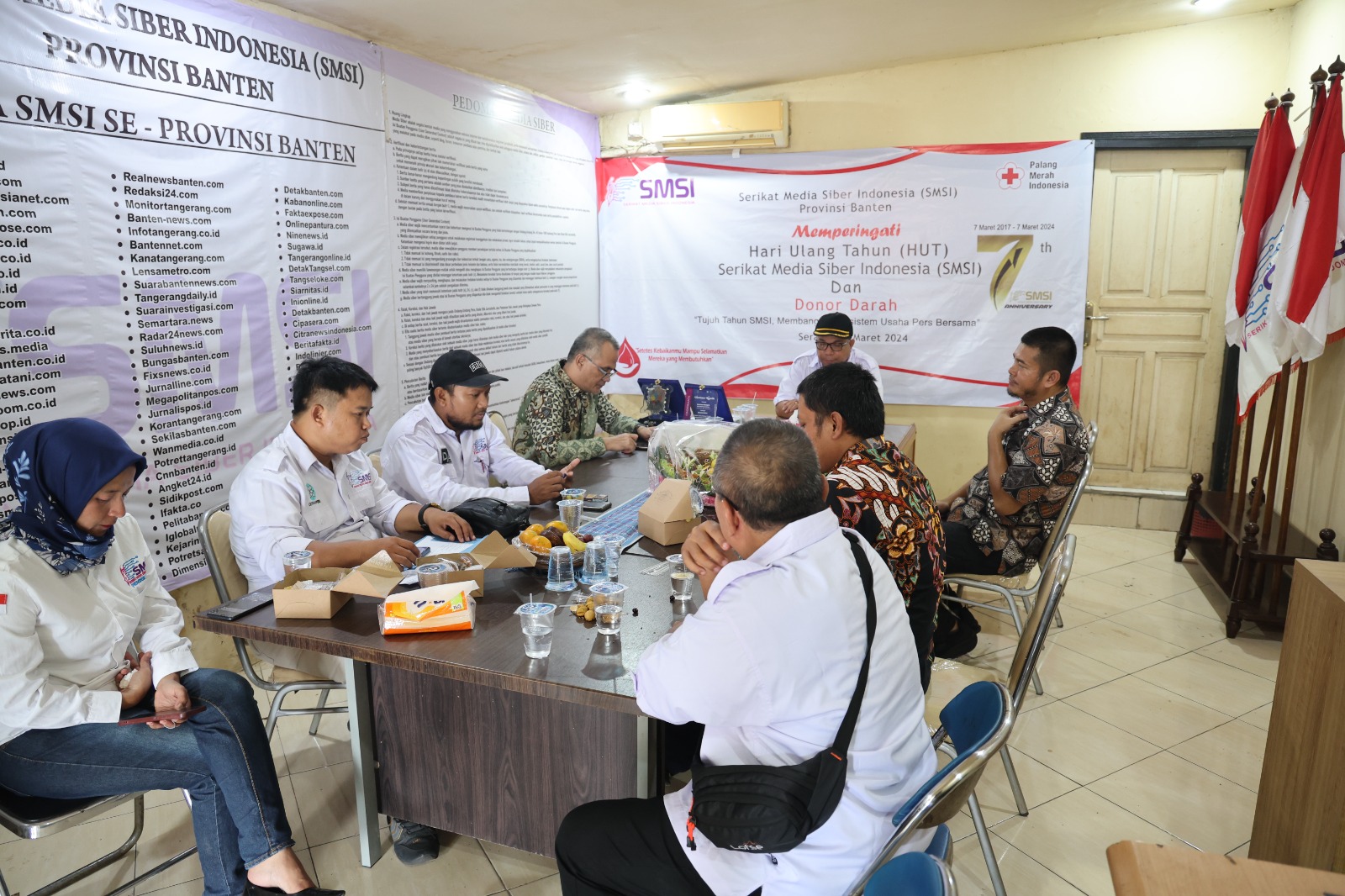 SERANG, iNst Media – Dalam rangka merayakan Hari Ulang Tahun (HUT) Ke-7, Pengurus Serikat Media Siber Indonesia (SMSI) Provinsi Banten menggelar donor darah bertempat di Sekretariat SMSI Provinsi Banten, Jalan Jenderal Sudirman No.25, Kota Serang, Kamis, (7/3/2024).