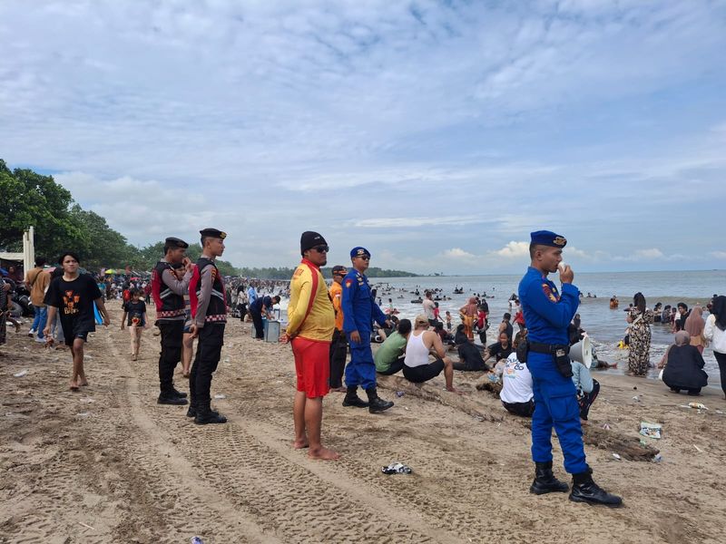 Personel juga memberi teguran tegas kepada pengunjung yang berenang ke area berbahaya. Selain itu, ada tim SAR yang disiagakan di pantai. (Kha/Red)