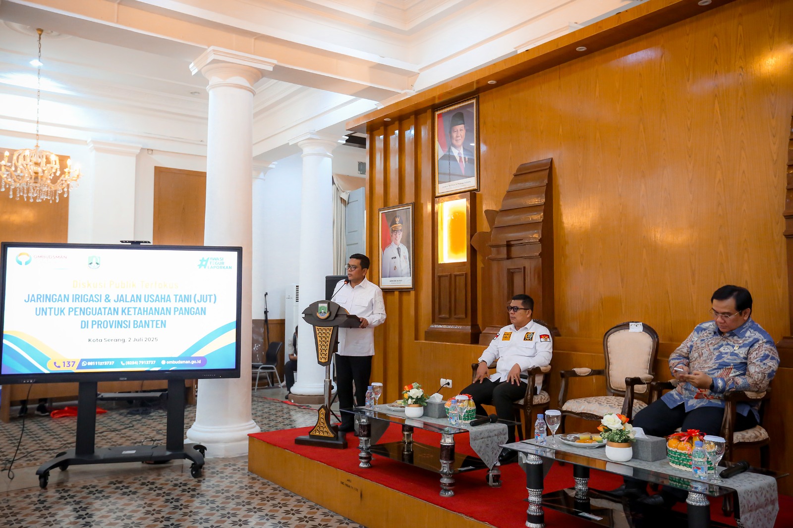 Hal itu disampaikan Andra Soni saat menghadiri Diskusi Publik Terfokus Jaringan Irigasi dan Jalan Usaha Tani untuk Penguatan Ketahanan Pangan di Provinsi Banten di Gedung Negara Provinsi Banten, Jl. Brigjen KH. Syam’un No.5, Kota Serang, Rabu (2/7/2025).