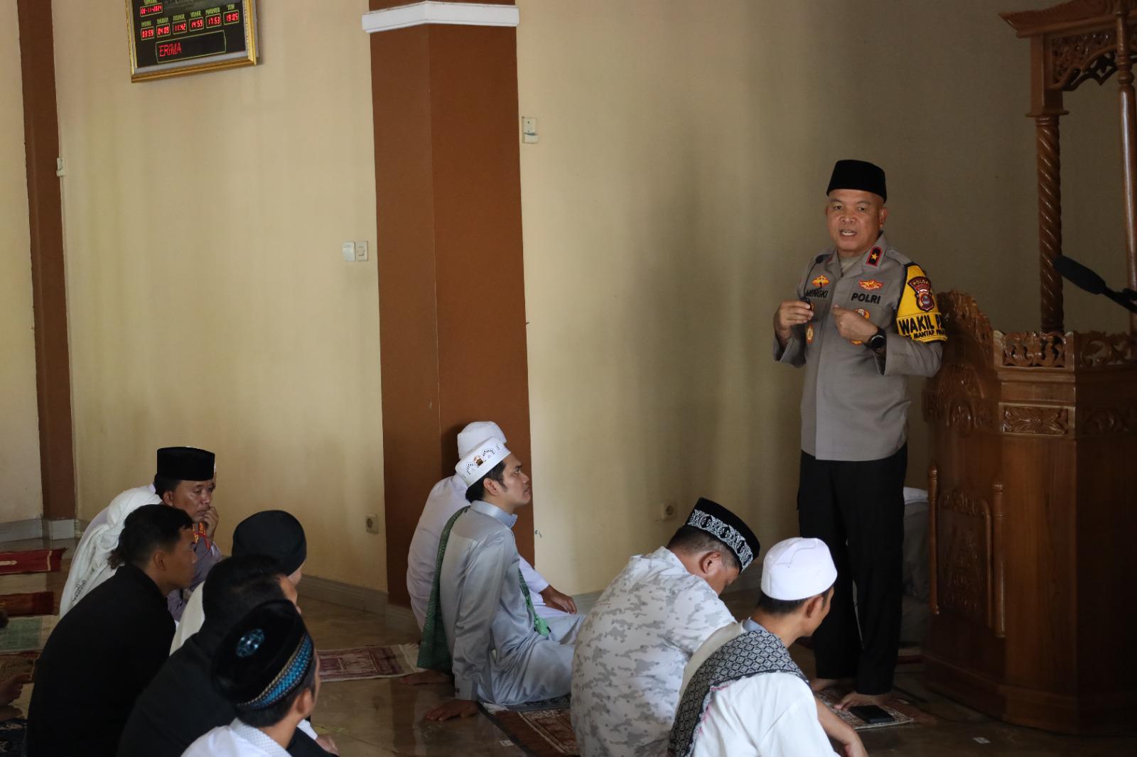 Selanjutnya Wakapolda Banten juga mengajak masyarakat selalu disiplin bersama-sama untuk menjaga situasi Kamtibmas agar tetap dalam kondisi yang Kondusif. “Saya juga mengucapkan terimakasih kepada jamaah sekalian yang telah berkenan meluangkan waktunya untuk kami dalam menyampaikan pesan-pesan Kamtibmas, saya mengajak seluruh warga Banten untuk terus menjaga situasi Kamtibmas menjelang Pilkada Serentak Tahun 2024,” ungkapnya.