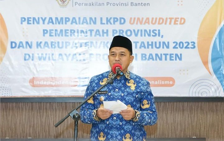 Cilegon, iNst Media – Wakil Wali Kota Cilegon Sanuji Pentamarta didampingi Sekretaris Daerah Kota Cilegon Maman Mauludin beserta jajaran hadiri acara Penyampaian Laporan Keungan Pemerintah Daerah atau LKPD Unaudited Pemerintah Provinsi dan Kabupaten / Kota Tahun 2023 di wilayah Provinsi Banten yang digelar di Badan Pemeriksa Keuangan (BPK) RI Perwakilan Provinsi Banten pada Senin, 18 Maret 2024.